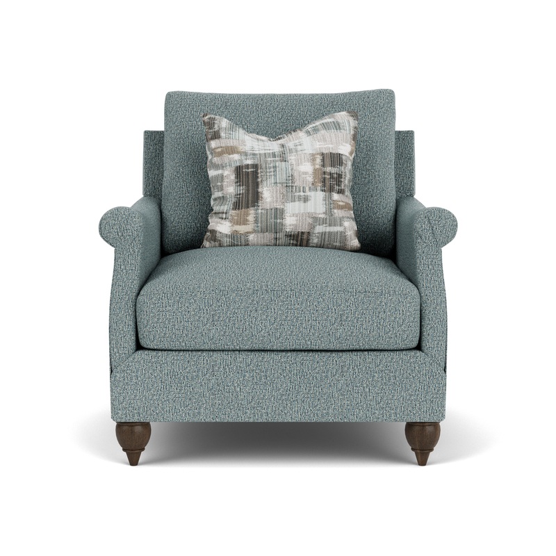 A Fresh Take on Timeless Style. Traditional elegance gets a fresh reinterpretation with the Veda chair. The petite, pleated roll arms slope down onto stately legs, delivering timeless details and graceful curves that soften the room while adding an abundance of charm. Generous seat space, cushion fill choices, and the Blue Steel Spring at the heart of the seat ensure lasting comfort. And bring your room together with an accent pillow, orderable in your choice of fabric.