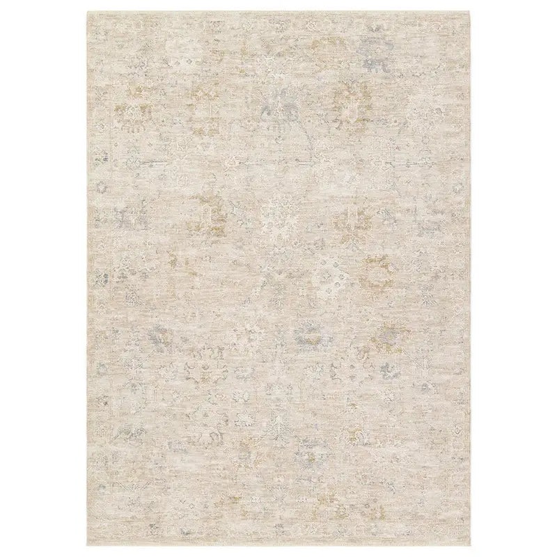 Elegant and timeless, the Upal Rug brings Oushak-inspired beauty to your home. Its tan and white oriental pattern instantly elevates any medium-traffic space, while subtle color variations from space-dyed polyester add depth and charm. Finished with cross-