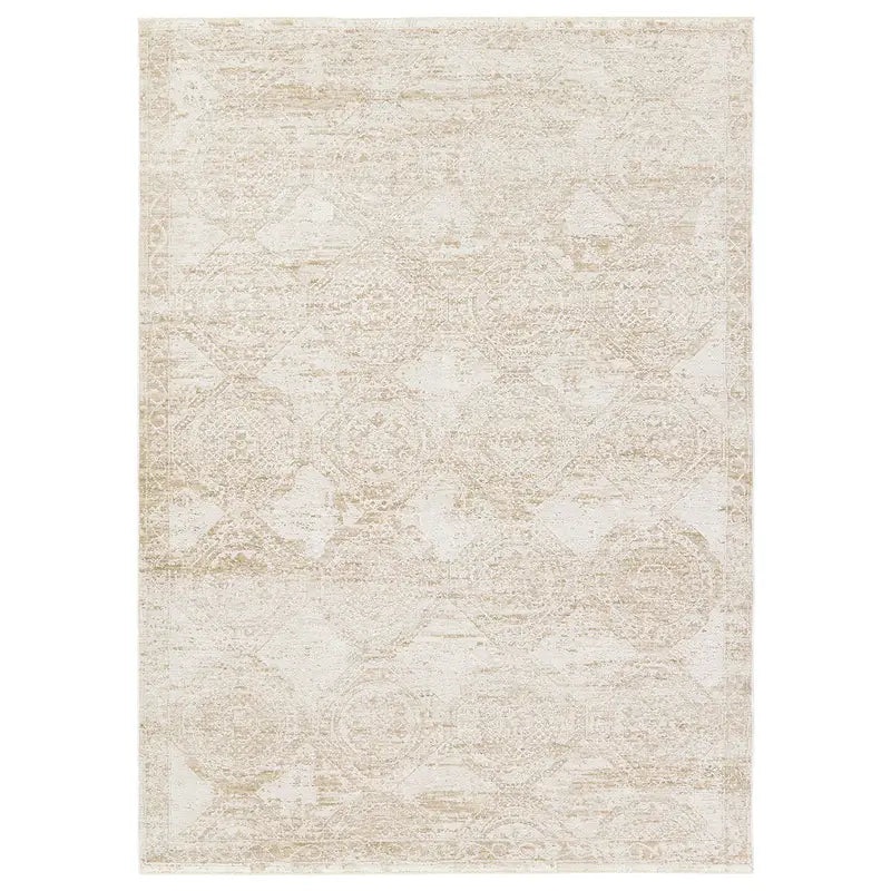 TheNara rugmasterfully blends timeless elegance with modern durability, featuring anOushak-inspired patternin a sophisticated white and tan palette. Power-loomed for resilience, its space-dyed polyester construction createsorganic color variationthat mimic