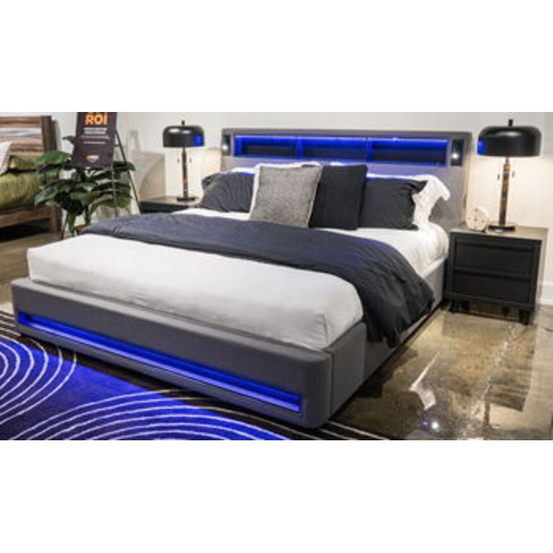 Verishaw – Gray – Queen Upholstered Headboard/Footboard/Roll Slats