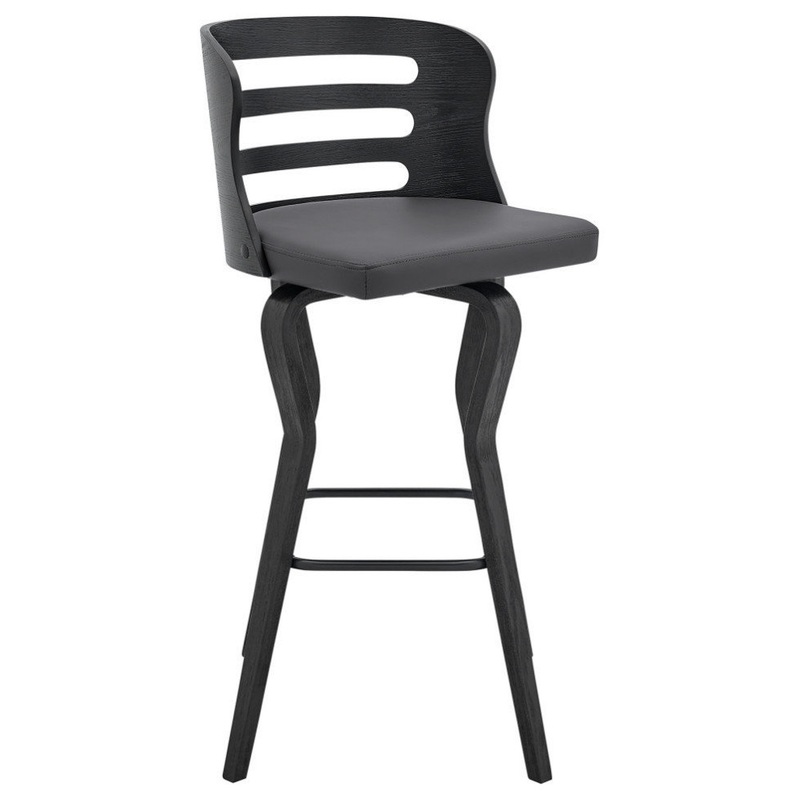Gather your family and friends and seat them in the Verne 30" Gray Faux Leather and Matte Black Wood Swivel Barstool from Armen Living. This wonderful bar stool is crafted to be breathable, with its slotted back, as well as functional, with the 360-degree