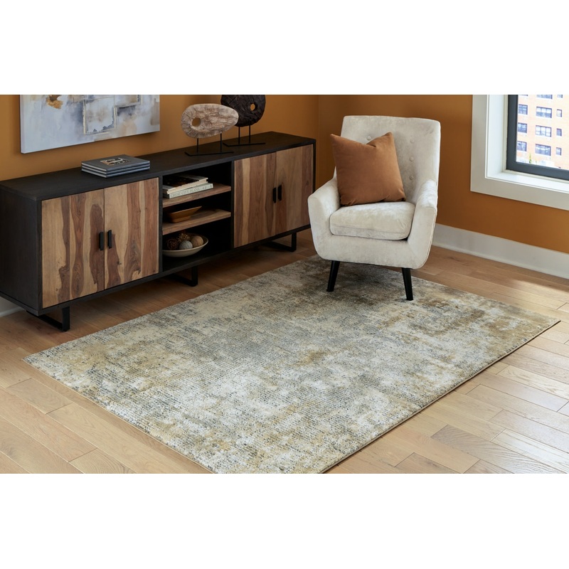 sku : R405382InformationThis area rug brings ethereal, modern style to your living space. Featuring an abstract pattern in neutral hues of gold, beige and gray, its low pile height is great for high-traffic areas like the kitchen and dining room.FeaturesMa