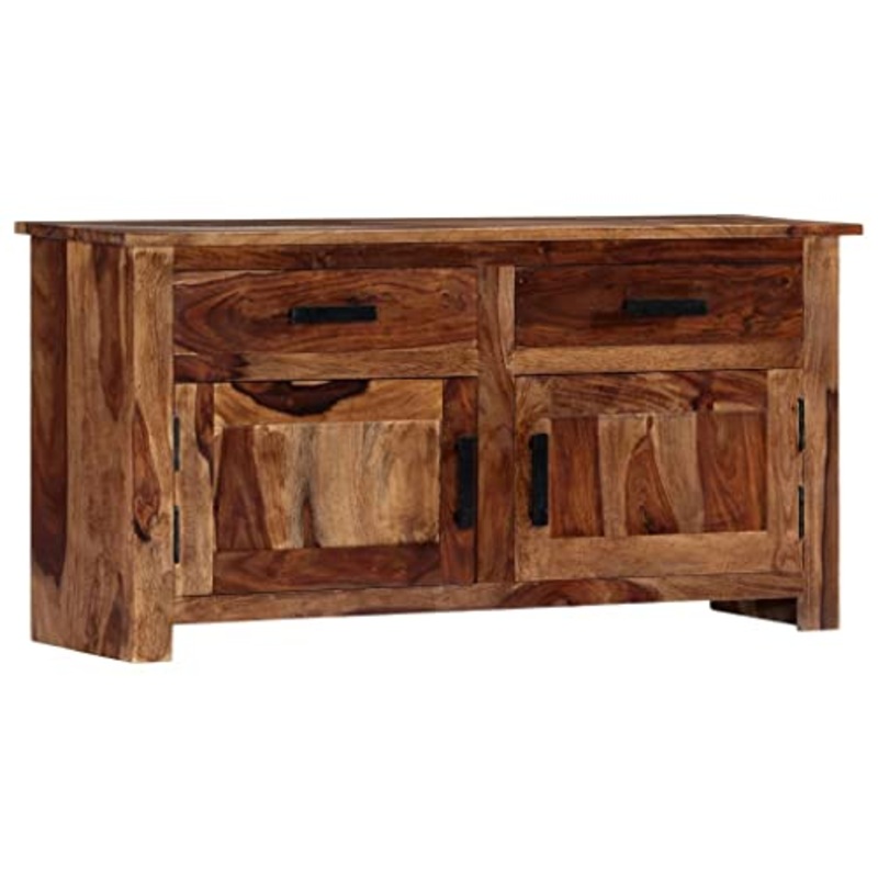 Dettagli: Questa credenza emana un fascino particolare ed un elemento di arredo in grado di catturare l’attenzione all’interno della casa. La credenza realizzata in legno massello di sheesham, un legno duro tropicale conosciuto anche come palissandro o dalbergia famoso per le sue venature naturali e la morbida fibra. Inoltre non soggetto a deformazioni o spaccature e ha una naturale resistenza al decadimento. Questo mobile dal design accattivante risulta pertanto estremamente resistente, robusto e affascinante. La perfetta artigianalit garantisce che ogni fase del processo di lavorazione, dalla lucidatura fino alla laccatura, venga eseguita con la massima cura. Questo armadio interamente realizzato a mano e l’appagante esteticit delle venature del legno rende ogni mobile unico e leggermente diverso da tutti gli altri. Il prodotto dotato di 2 cassetti e 2 ante che offrono ampio spazio dove riporre dispositivi multimediali, libri e altri oggetti. Il mobile gi assemblato per cui non richiesto alcun montaggio. Nota importante: Le venature del legno variano da pezzo a pezzo, rendendo ciascun mobile unico. La consegna casuale. Materiale: Legno massello di sheesham Dimensioni: 100 x 30 x 50 cm (L x P x A) Finitura: Lucidato e laccato Con 2 ante e 2 cassetti Non necessita di montaggio