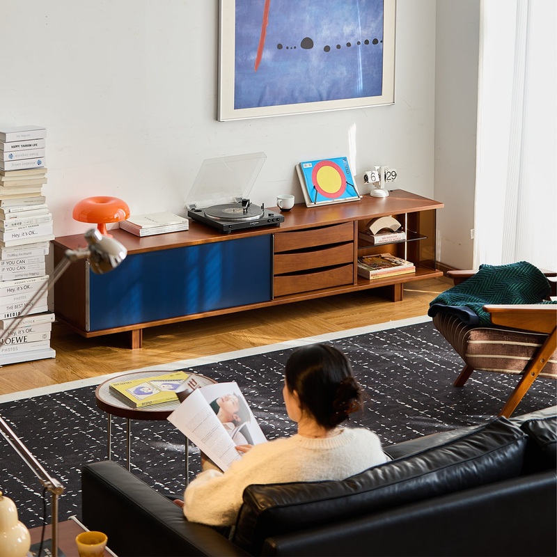 Vintage Boxwood Sliding Door TV Console MIST blends Danish-inspired design with functional elegance. Featuring color-blocked sliding doors, spacious storage, and soft ambient lighting, it’s a stylish centerpiece for any living spac
