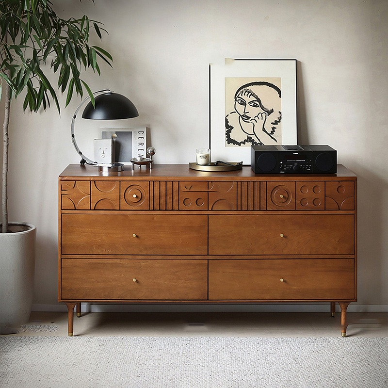 The Vintage Boxwood Storage Cabinet MADRID combines classic craftsmanship with modern functionality. It features a solid boxwood frame, drawer doors, and lightweight Paulownia wood inner drawers. Each cabinet is unique, with natural wood grains and imperfe