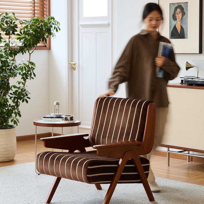 Vintage Mixed Weave Fabric 1 Seater Sofa TRUFFLE offers deep seating, a 102 recline, and striped velvet comfortperfect for relaxed, stylish lounging at home.