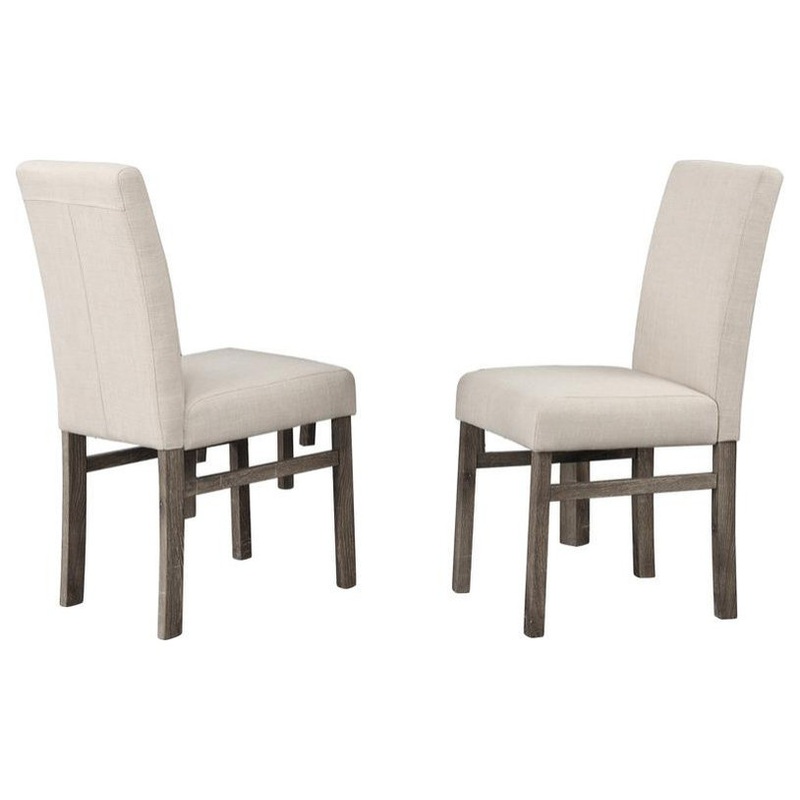 This timeless design dining chair that is also durable and sleek, will be perfect for any occasion. The dining chair is made out of engineered wood. The upholstery for this chair is linen-blend fabric.