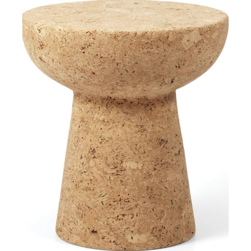 Light and velvety to the touch, the Vitra Cork Stool (2004) is shaped from a massive yet lightweight piece of pressed agglomerate cork. In three different shapes which also work well as side tables, the stools are made with unsealed cork so they develop a