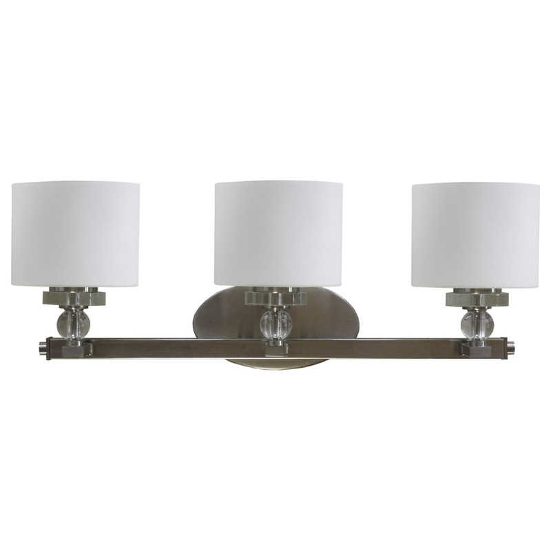 The Orca collection features a stainless steel finish with dove white glass. Outfit any room in glamorous style with this eye-catching crystal fixture Perfect for bathroom. The dimensions of this fixture are 25 in wide, 7 in long, a height of 10 in, and hanging weight of 19 pounds. Bulbs are not included with this fixture and have to be purchased separately. This fixture takes 3 x A19 60 watt bulbs. This fixture is easily dimmable with a proper dimmer and dimmable bulbs.