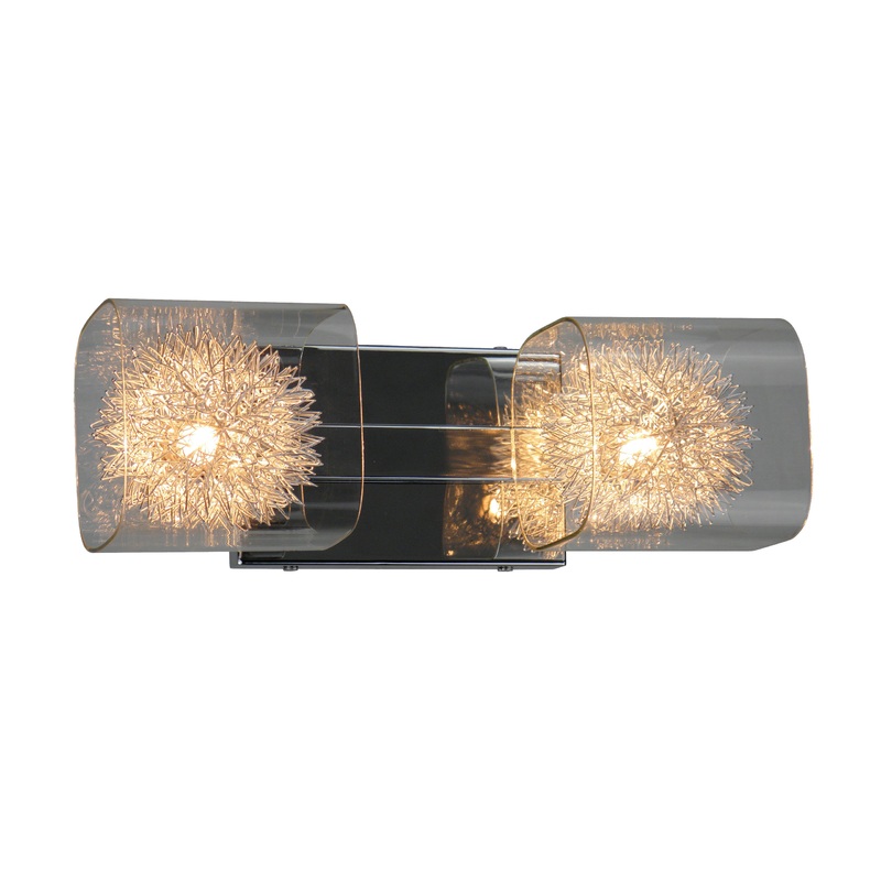 The Vivian collection features a chrome finish with clear glass. Outfit any room in glamorous style with this eye-catching crystal fixture Perfect for bathroom. The dimensions of this fixture are 14 in wide, 5 in long, a height of 5 in, and hanging weight of 1 pounds. Bulbs are not included with this fixture and have to be purchased separately. This fixture takes 2 x G9 50 watt bulbs. This fixture is easily dimmable with a proper dimmer and dimmable bulbs.