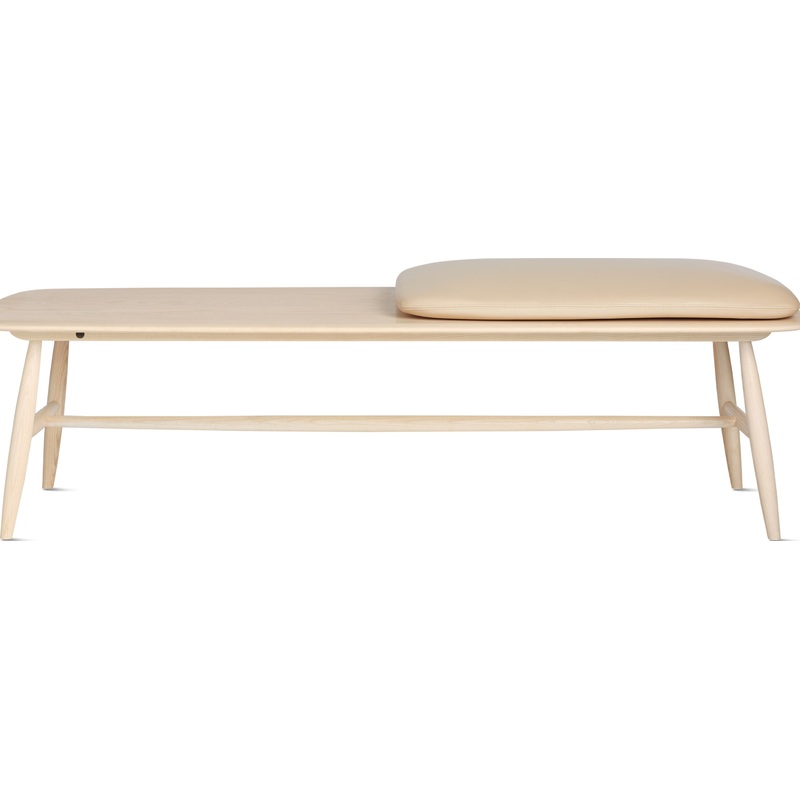 Handcrafted from solid wood, the Von Bench (2018) was inspired by a chair by Lucian Ercolani, who founded the British furniture company Ercol in 1920. Topped with a Raise leather seat pad, this half-seat, half-table solution is suitable for entryways, living rooms, and meeting areas. The moveable seat pad can be placed anywhere on the bench or removed entirely to convert Von into a coffee table. Von Bench is produced by the premium brand L. Ercolani, a division of Ercol. Made in the U.K.