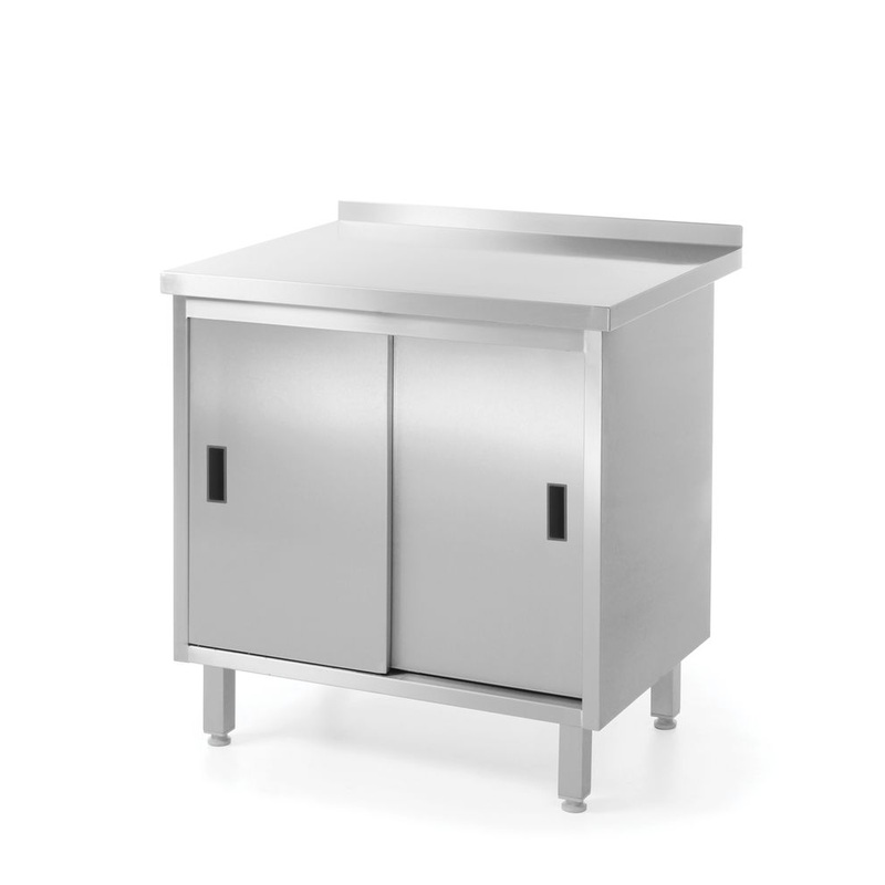 Wandarbeitstische mit Schrank und Schiebetren verschweit , HENDI, Profi Line, 800x600x(H)850mm