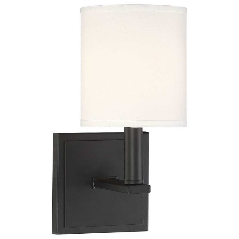 Chic and contemporary! The Waverly wall sconce is a sleek fixture to add a beautiful polished layer of light to your home’s overall interior lighting design. Plus the clean lines and soft glow create a subtle and serene mood. The frame has an outlined square wall plate and a bold L-shaped light arm with an on-trend matte black finish. A streamlined cylindrical white shade encloses one 60W C-style bulb for lovely glare-free illumination. The Waverly’s elegance blends well with many decor styles such as modern farmhouse and transitional. And the sconce measures 5 wide and 11 high extending 6.5 from the wall an ideal fit for a bathroom bedroom dining area living room kitchen family room foyer media room office or hallway.