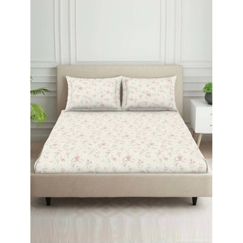 A wonderful mix of classic and contemporary tones, this set of 1 double bedsheet and 2 pillow covers from Welspun is sure to enliven your bedroom. Made of polycotton with a thread count of 120, this set with a floral pattern will speak for your high-end fu