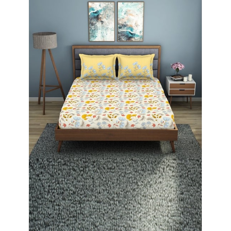 GR4670177928Welspun light yellow polycotton jubilance double bedsheets