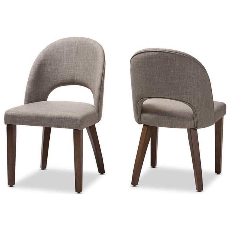 The Wesley dining chair is both fun and functional. The mid-century modern-inspired design of this chair evokes a retro charm. Constructed of solid, walnut-finished rubberwood, this dining chair is built to last. The Wesley is upholstered in light grey fab