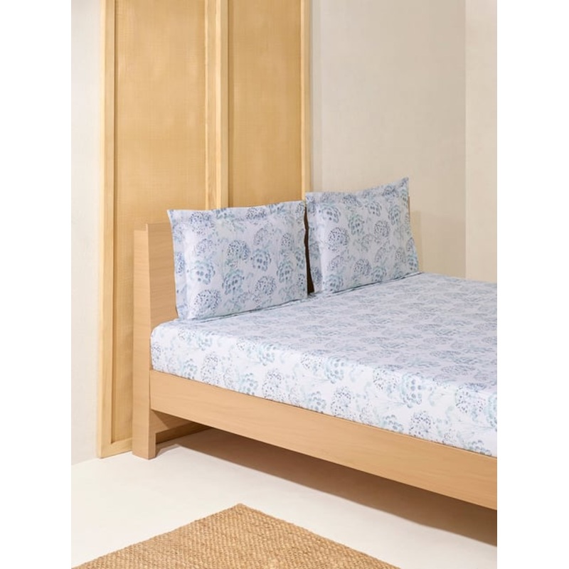 GR4670177663Westside Home Blue Foliage Printed King Bed Sheet Set
