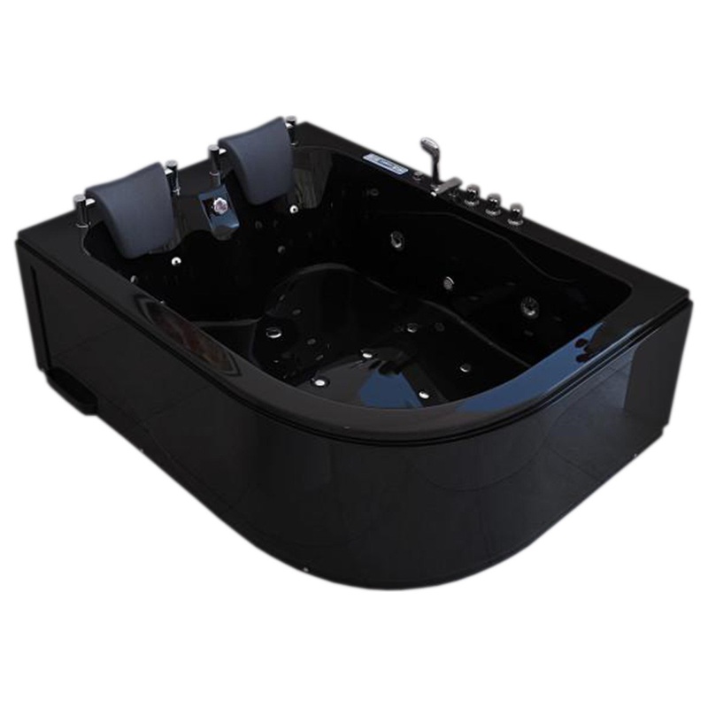 Amalfi - Whirlpool Bathtub black with Heater and 22 nozzles for 2 Persons . TECHNICAL SPECIFICATIONS: -Bath tub size: 70.8" X 47.2" X 25.6 High -Water Jet Pump (1HP, 750W) -200w Air Pump -Integrated heater to keep the water temperature constant -6 water je