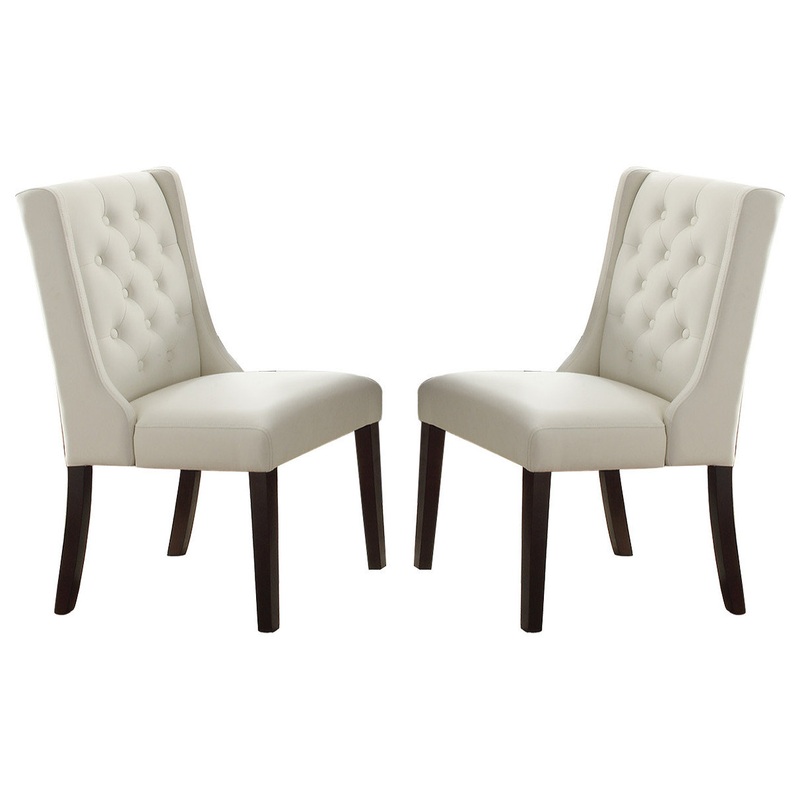 Turn your kitchen is land into a convenient dining space with these dining chairs. Soft white leather-upholstered foam cushions,button tufted backrests, and wood leg combine to offer excellent seating comfort and body support.
