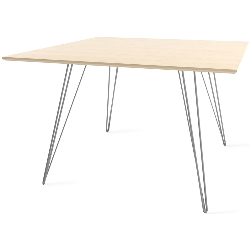 A thin, elegant and light table that can be customized to any shape, size and color desired. This handcrafted item perfectly blends industrial hairpin legs with a beveled wooden top. The irregular beauty of its natural wood combined with its simple elegant base creates a timeless, original design. This piece is offered in dinning and coffee heights as well as several shapes and sizes including large and small: rectangle, oval, square, and circle
