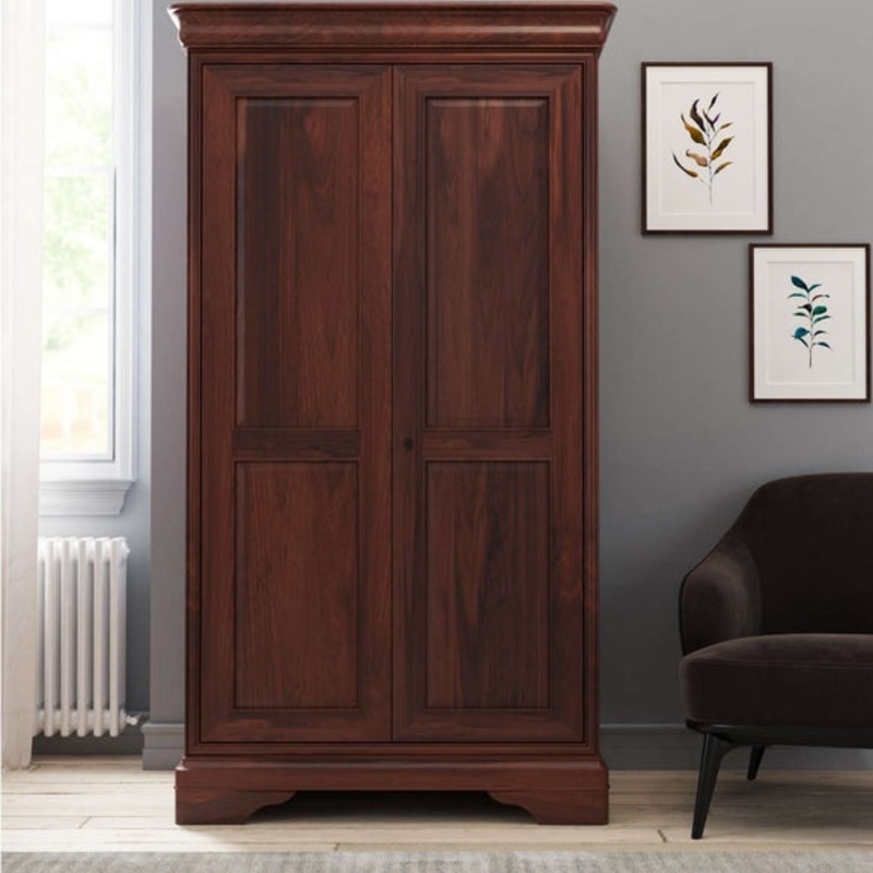 This beautifully crafted wardrobe brings timeless elegance and practical storage to your bedroom. Made from solid wood with a rich lacquered finish, it features antique-style bronze hardware that adds a touch of vintage charm. Inside, thoughtful details like a built-in tie rack and shoe rails help keep your clothing and accessories neatly organised.