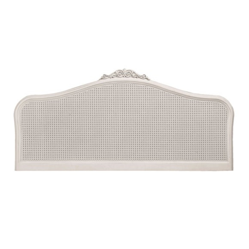 This intricately crafted headboard brings a touch of French country elegance to your bedroom. The rattan panel is framed by carved wood with a soft, distressed finish, offering a light and textured focal point. Designed to fit standard double, kingsize or superking beds, its a simple way to elevate your space with classic charm.