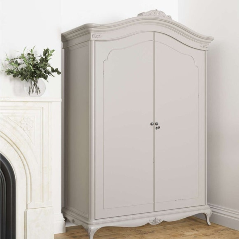 Solid poplar and Birch veneer frameSoft painted finishCarved detailingAntique pewter hardwareThis spacious wardrobe is designed to adapt to your storage needs with a flexible interior layout. It features multiple hanging and shelving options, two tie racks