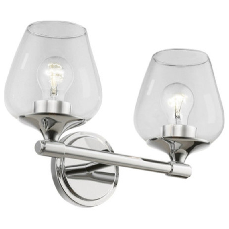 This two light vanity sconce from the willow collection has understated elegance. It features minimal details, clear curved glass with a polished chrome finish and can fit into any decor. -Bulb Wattage: 60 -Number of Bulbs: 2 -Type of Bulb: Medium Base -Bu