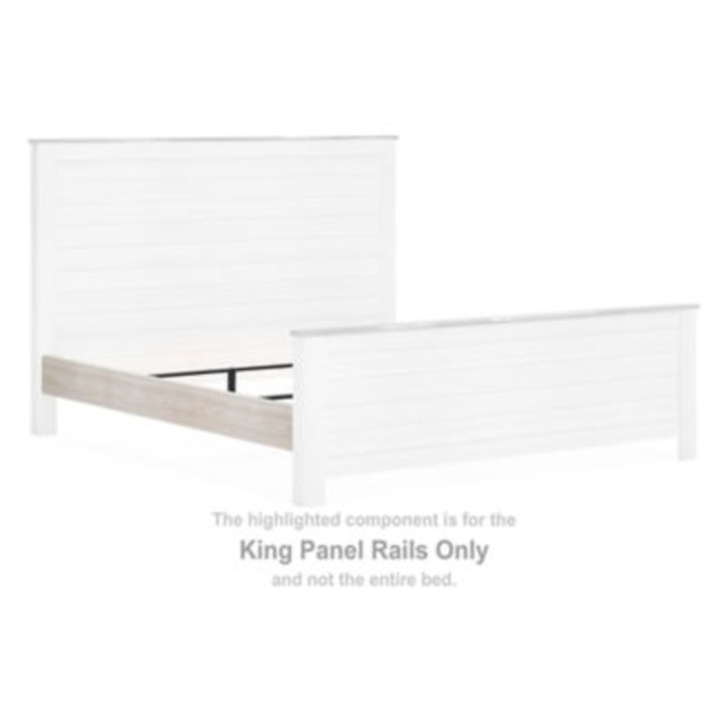 This set of king panel rails is made with engineered wood (MDF/particleboard/plywood) and decorative laminate. Pairs with other items in the series to make a bed kit.Additional DimensionsAssembled king bed: 0"Rail to floor: 7.13"Product FeaturesCompatible