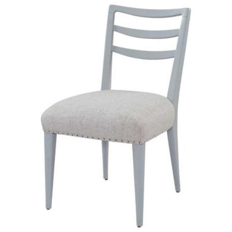 Elevate your dining experience with the Wilmington Ladder Back Dining Chair, a sophisticated addition to any dining space. Crafted with meticulous attention to detail, this set of two chairs combines timeless design with modern comfort. Each chair features a classic ladder back design, providing both elegance and sturdy support. The ocean-colored wood finish adds a refreshing touch, seamlessly complementing various decor styles. Upholstered seats in luxurious polyester fabric offer a plush feel and effortless maintenance, ensuring both comfort and durability for years to come. Highlighting the exquisite craftsmanship are the nail head trim accents, which add a touch of refinement and sophistication to the chairs. Whether gathered around the dining table for a formal dinner or used as accent seating in a living area, these chairs exude understated charm and inviting appeal. Upgrade your dining ensemble with the Wilmington Ladder Back Dining Chair set, where style meets comfort in perfect harmony.