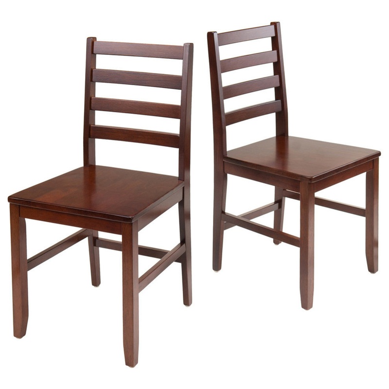 Classic ladder back design with 4 slats high back add a touch of elegance and comfort to your dining room. The actual seat dimension is 16.54 W x 16.46 D. Measurement from seat to the highest point of back is 17.06 . This Ladder back chair is a sturdy solid wood construction that can hold up to 220lbs. Walnut finish. Ready to assemble.
