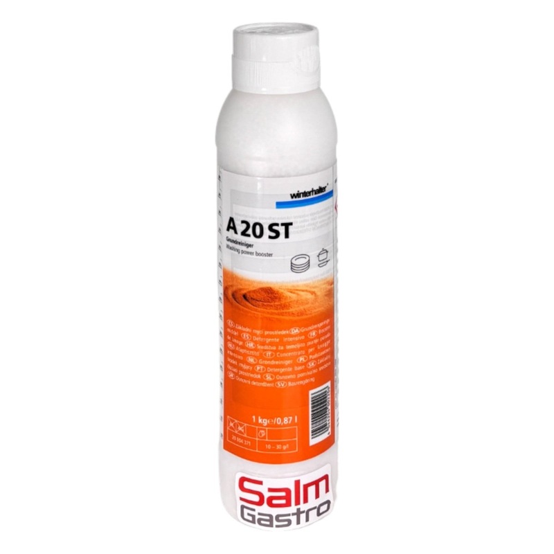 Lieferumfang:1 Flasche A20 1 kgEinsatzbereich:Fr die bedarfsweise Anwendung in allen gewerblichen SplmaschinenZur maschinellen GrundreinigungGeeignet fr Splgut aus Kunststoff, Porzellan, Edelstahl sowie Besteckteile und GertschaftenNicht geeignet fr Silber