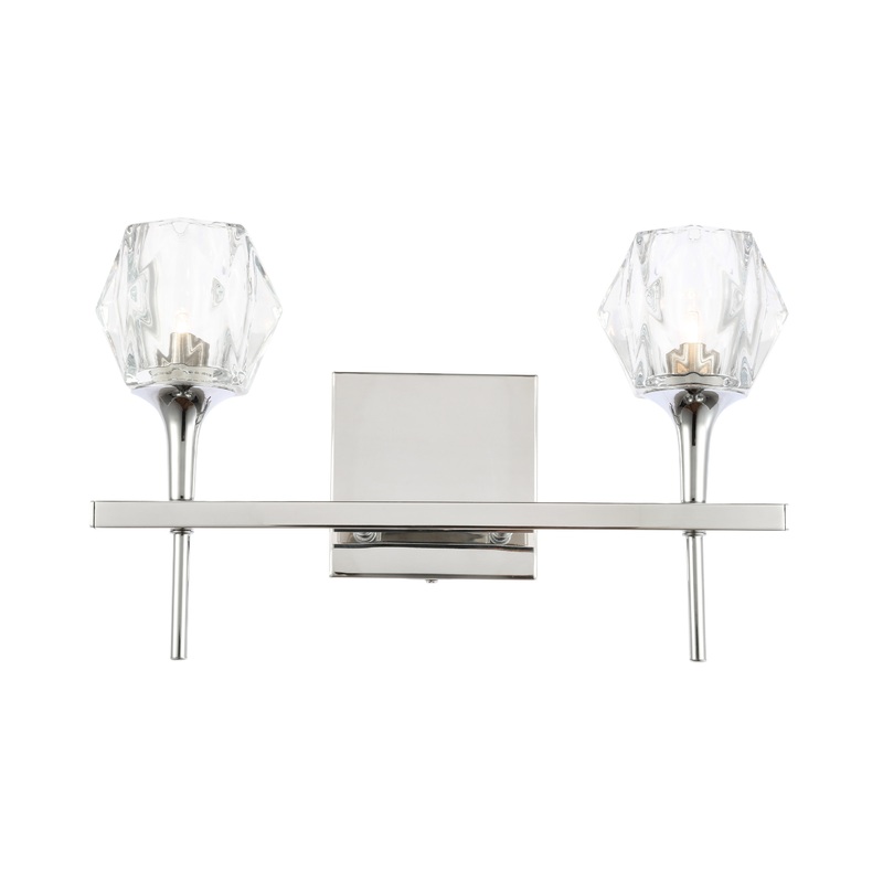 This 2-light bath or wall sconce has chrome finish hardware resembling a long tapered handle for a contemporary design that may bring some inspiration to the room.