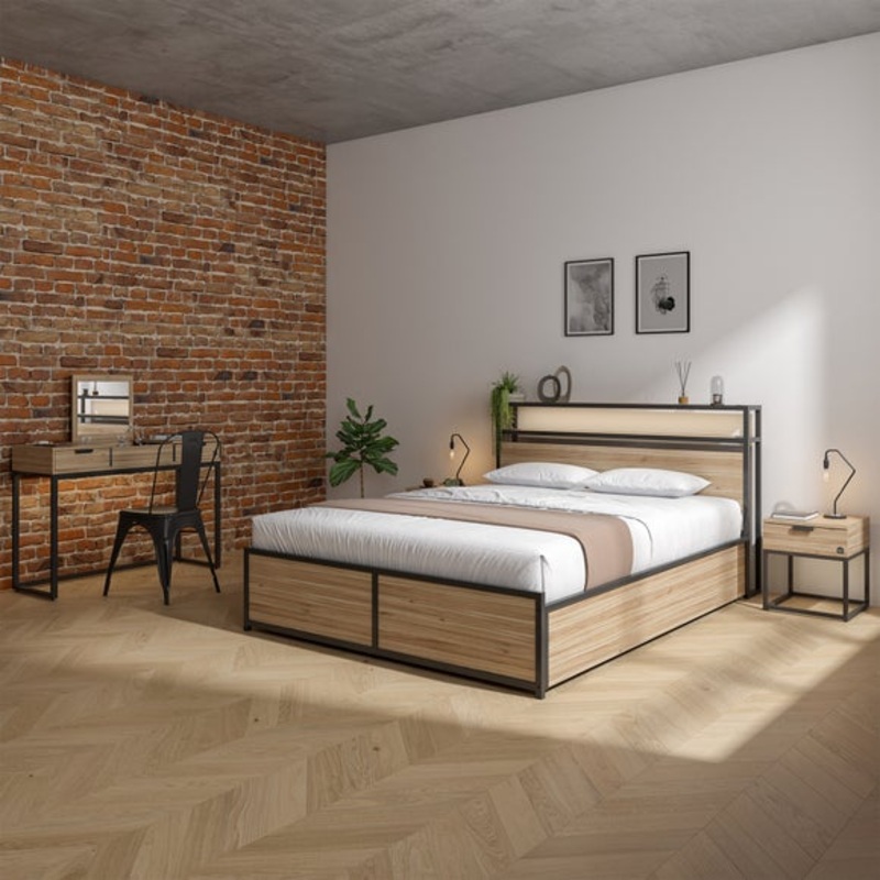 Modern, wooden bedLarge storage, side liftWireless chargingLED lightsThe X Rocker Denver ottoman bed is where smart storage meets sleek design. Built with a robust black steel frame and warm wood-effect panels, it offers a stylish yet practical centrepiece