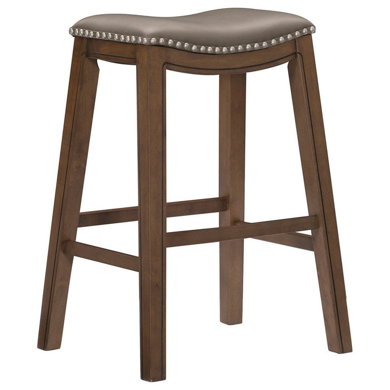 The transitional styling and abundance of height and color options allow for versatile placement of the Yannis Collection within a home’s casual dining spaces. The stool is offered in three heights – 18-inches, 24-inches and 29-inches. Furthering your options are the 5 available color seat options – Brown, Black, Green, Grey and Red. Each stool features nailhead trim that encircles the seat and routed accent on the legs and seat apron that further defines the stool’s profile.