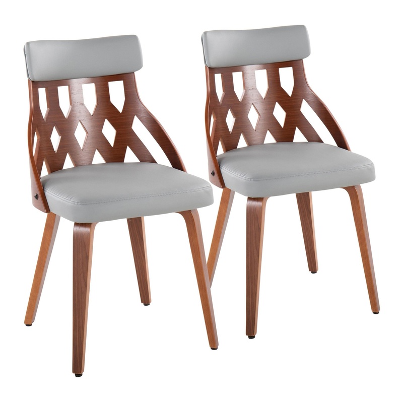 York Chair, Set of 2, Walnut Wood, Light Gray PU – Midcentury – Dining Chairs – by LumiSource