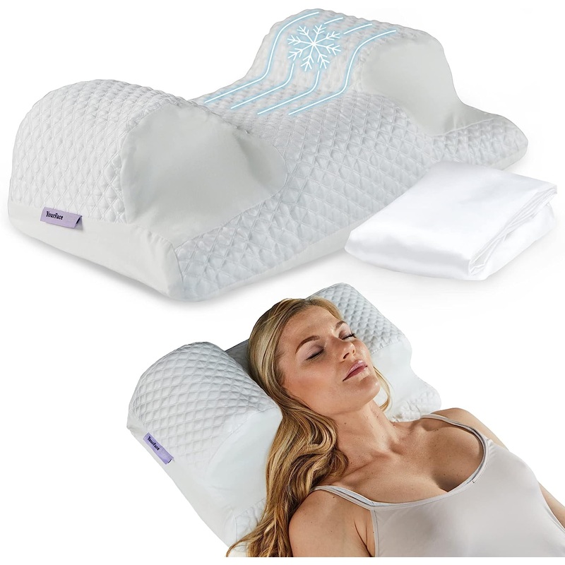 YourFacePillow Cooling Beauty Pillow with Satin Case Anti Aging Beauty Sleep Pillow for Wrinkle Prevention Memory Foam Back Sleeping Pillow Breathable & Soft Anti Wrinkle Pillow