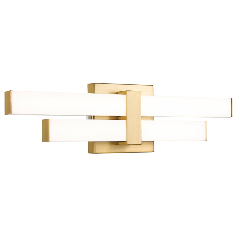 Geometry and minimalism play well together in the crisp, modern design of this two-light vanity light, an intriguing way to illuminate a bath space with compatible contemporary elements. Symmetry and balance collude in a fixture feature a pair of bar diffusers forming a tapered silhouette, creating dimmable ambient lighting with customized white color values. Features: Constructed from aluminum Integrated LED lighting Capable of being dimmed Can be mounted to provide up or down lighting Rated for installation in damp locations Title 20 and Title 24 compliant ADA compliant Covered by Z-Lite’s 3 year limited manufacturer warranty Dimensions: Height: 5″ Width: 18″ Extension: 2-1/2″ Product Weight: 2 lbs Backplate Height: 5″ Backplate Width: 5″ Backplate Depth: 1-1/2″ Electrical Specifications: Wattage: 20 watts Lumens: 1500 Color Temperature: 2700K, 3000K, 3500K, 4000K, 5000K Color Rendering Index: 90 CRI