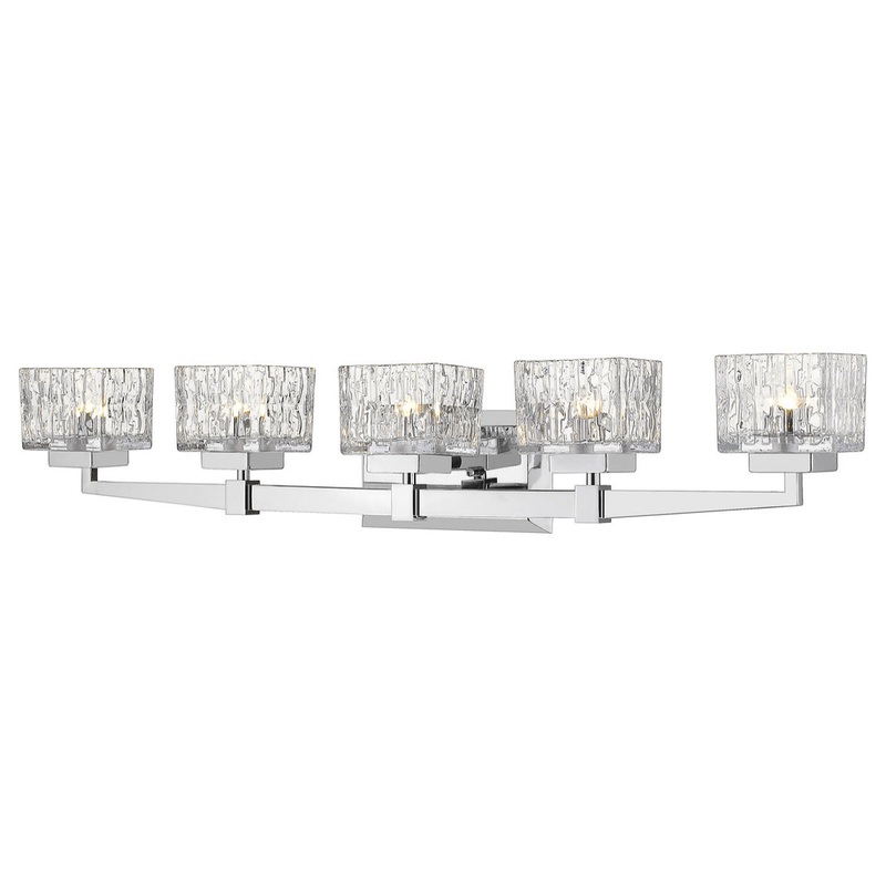 Z-LITE 1927-5V-CH 5 Light Vanity, ChromeCollection: RubiconFrame Finish: ChromeFrame Material: SteelShade Finish/Color: ClearShade Material: GlassDimension(in): 5.25(L) x 36(W) x 6.5(H)Bulb: (5)75W G9 base,Dimmable(Included)Vanity/Sconce Dual Mount(Up & Do
