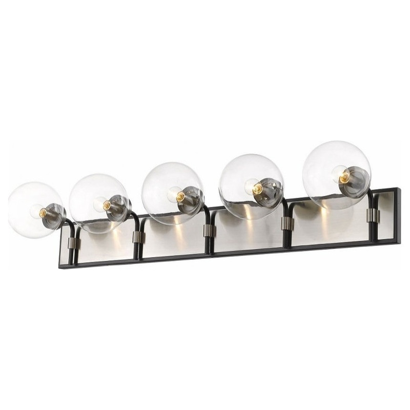The Parsons collection of mid-century modern inspiParsons 5 Light Bath Matte Black/Brushed UL: Suitable for damp locations Energy Star Qualified: n/a ADA Certified: n/a *Number of Lights: Lamp: 5-*Wattage:60w Candelabra Base bulb(s) *Bulb Included:No *Bulb Type:Candelabra Base *Finish Type:Matte Black/Brushed Nickel