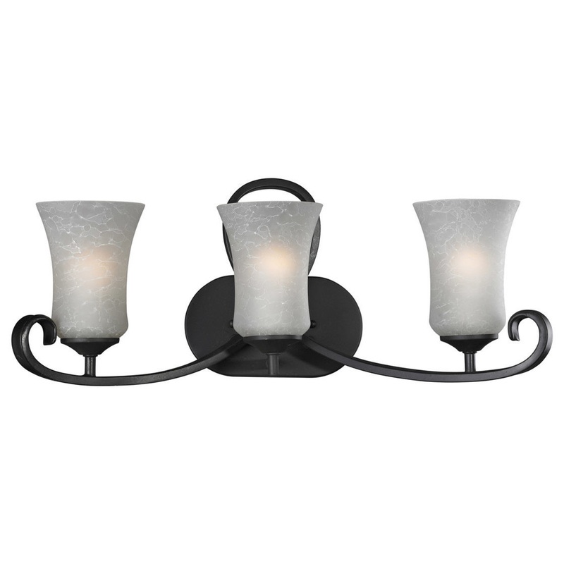 The unique cafe bronze fixture uses weaving circular designs to create a one of a kind, modern look. White watermark shades compliment this three light vanity, and help to create a totally unique statement in contemporary lighting, perfect for any modern space. This light takes 3-100 watt bulbs. Bulbs not included. Ul approved. Hardwire installation