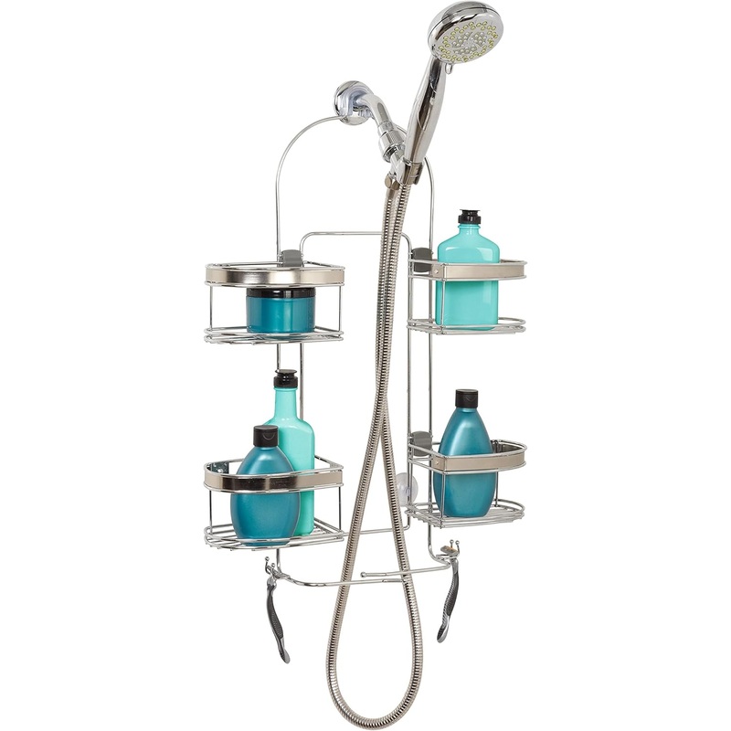 Organize your shower instantly with this easy to install, rust-resistant, expandable handheld shower head caddy. This unique caddy has four baskets that expand outward on a sliding mechanism to either allow space for a hand held shower hose or help organize for large/tall bottle storage. When the caddy is expanded the washcloth holders help contain the shower hose when it is not in use. Zenna Home leads the way in innovation, functionality, style and value. We provide shower organization in a wide range of designs to meet all your bathroom needs.