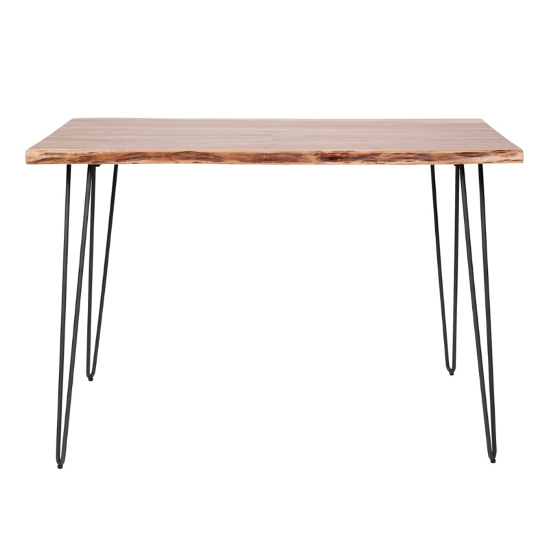 A natr szn, termszetes formj akcfa asztallappal rendelkez Zistra 042 brasztal egy modern megjelens btordarab, amely a vkony, visszahajltott fekete fm lbaknak ksznhet. Praktikus kialaktsa, s idelis mrete miatt knnyedn elhelyezhet konyhba, tkezbe, vagy nappaliba is.