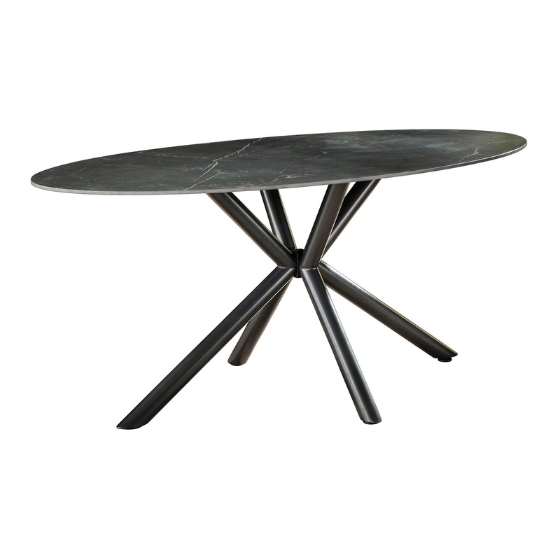 A Zistra 061 tkezasztal egy modern megjelens btordarab, amely fekete, termszetes mintzat kermibl kszlt, gy luxus hatst kelt. A vkony, ovlis asztallap, s a keresztben ll fm lbak modern klst klcsnznek, gy tkletesen illeszkedik a kortrs, a klasszikus, s a ska