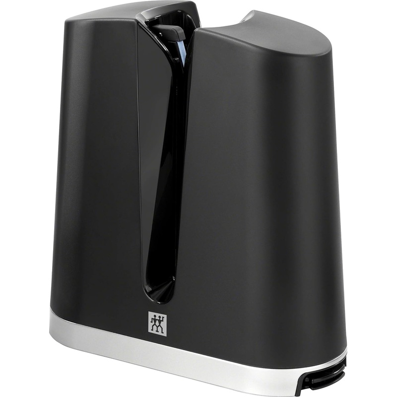 ZWILLING V-Edge Professional Knife Sharpener, for both Western and Japanese Blades, Black ZWILLING V-Edge offers the exceptional sharpness of a professional whetstone with the ease of a pull-through sharpener. This cutting edge sharpener allows you to rest